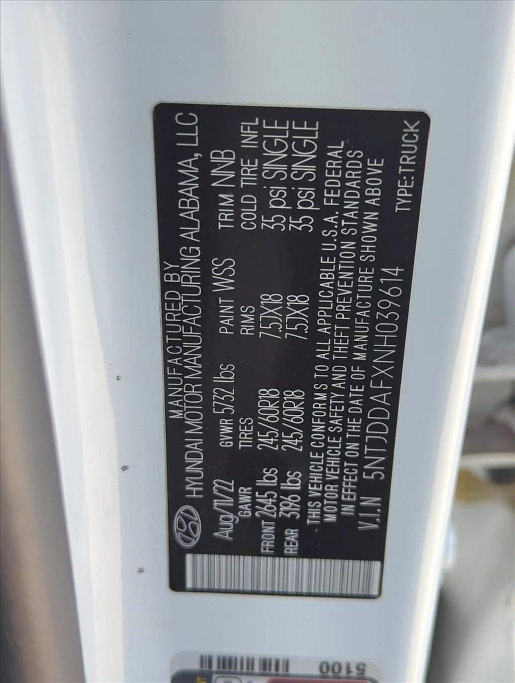 5NTJDDAFXNH039614