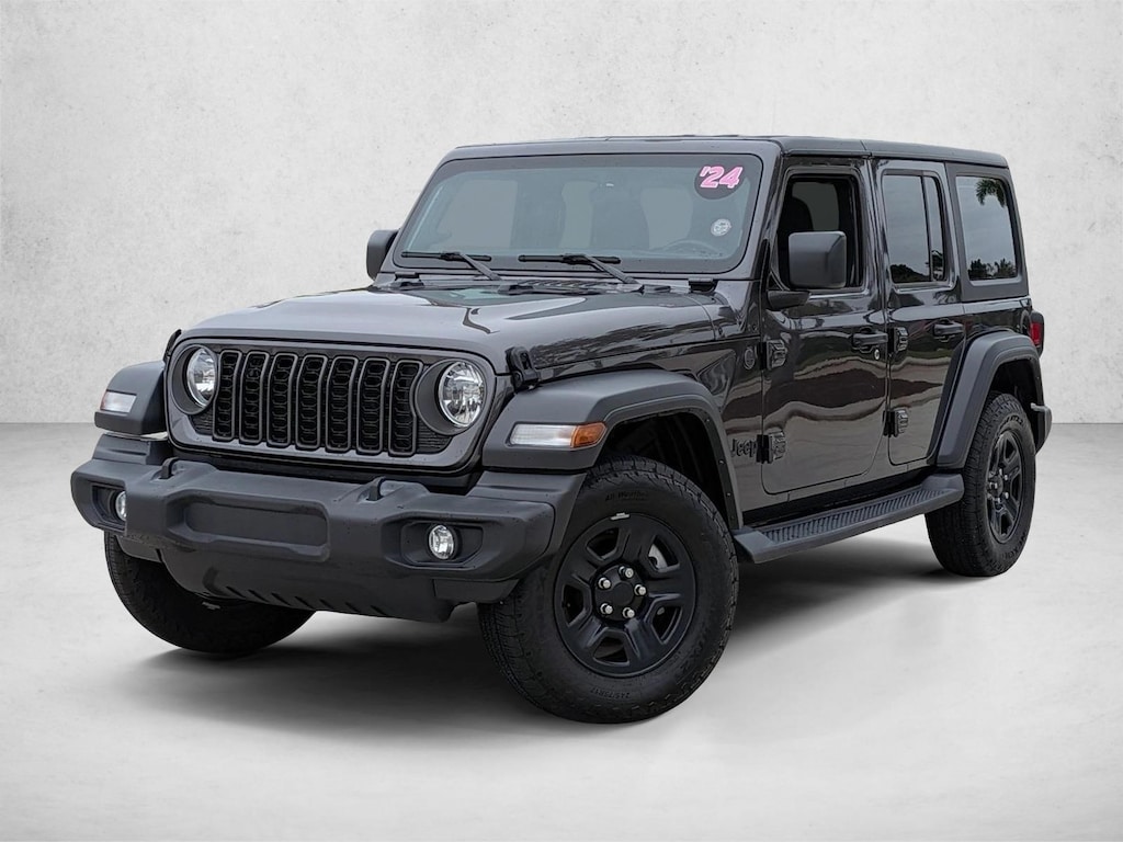 AutoNation Toyota Weston is honored to present a wonderful example of pure vehicle design... this 2024 Jeep Wrangler Sport only has 7,793mi on it and could potentially be the vehicle of your dreams! This Jeep includes: MOPAR ALL-WEATHER FLOOR MATS Aluminum Wheels Floor Mats BLACK, CLOTH LOW-BACK BUCKET SEATS Aluminum Wheels Cloth Seats Bucket Seats ENGINE: 3.6L V6 24V VVT UPG Aluminum Wheels V6 Cylinder Engine Gasoline Fuel BLACK 3-PIECE HARD TOP Targa Roof Aluminum Wheels Rear Defrost Convertible Hardtop GRANITE CRYSTAL METALLIC CLEARCOAT Aluminum Wheels QUICK ORDER PACKAGE 24B SPORT *Note - For third party subscriptions or services, please contact the dealer for more information.* Perfect for the on-the-go family, this Jeep Wrangler Sport is an SUV everyone will love. With exceptional mileage, options and power, you'll insist on driving it on all your outings. When Jeep created this vehicle with 4 wheel drive, they immediately enhanced the performance ability. Easily switch between two and four wheel drive to take advantage of the improved traction. The Jeep Wrangler Sport will provide you with everything you have always wanted in a car -- Quality, Reliability, and Character.